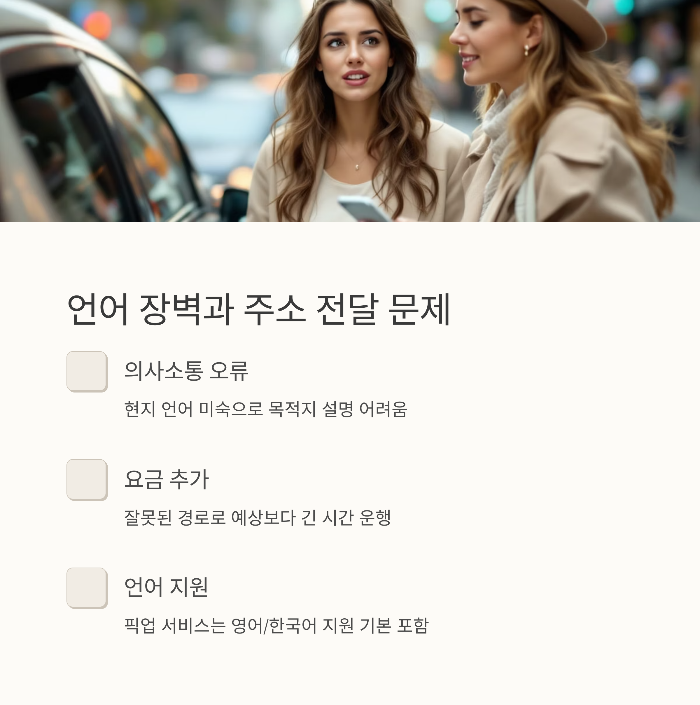 픽업 서비스는 영어 또는 한국어 지원이 기본 옵션으로 포함된 경우가 많아 이런 혼선을 피할 수 있습니다.