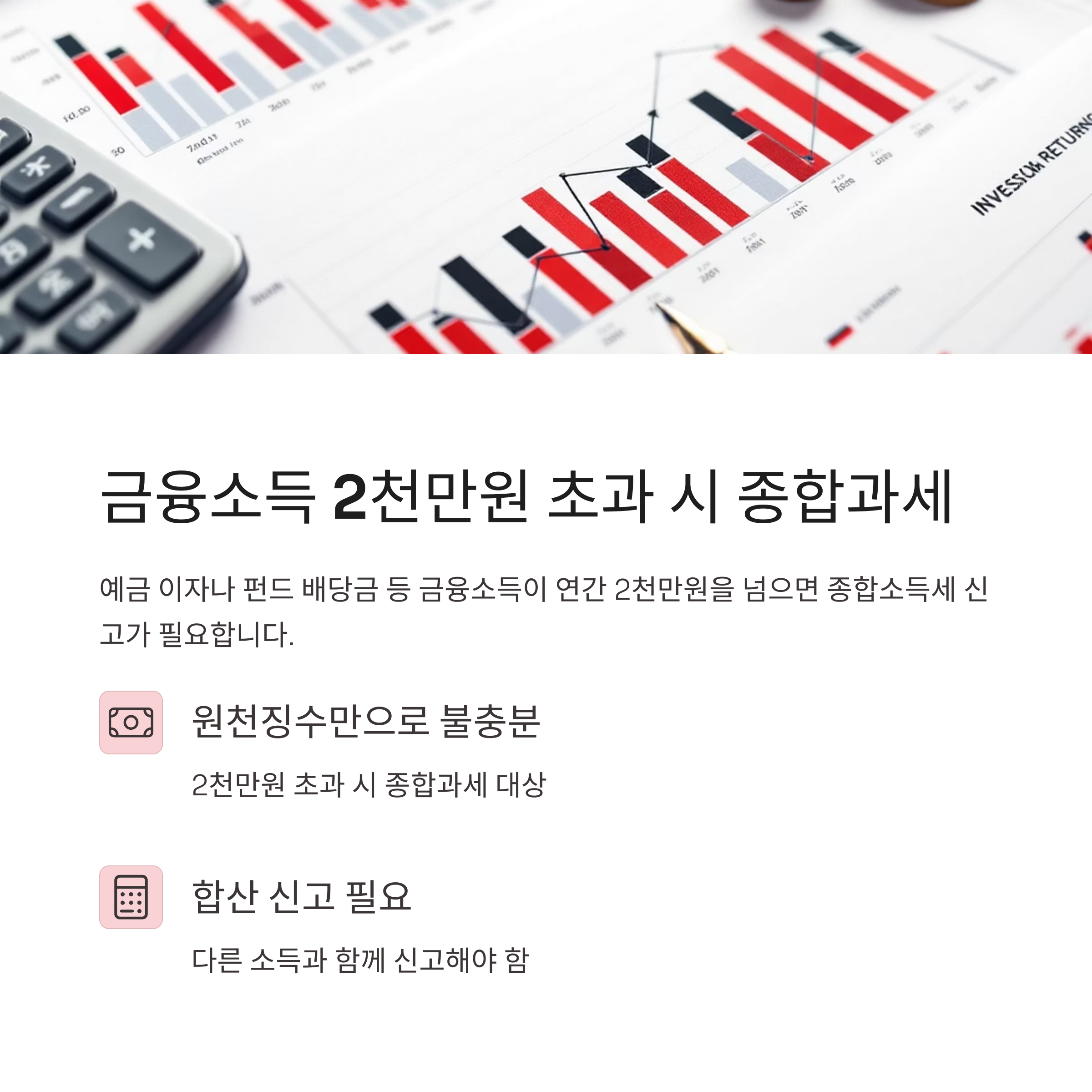 2천만 원 초과 시에는 종합과세 대상으로 합산 신고가 필요합니다.