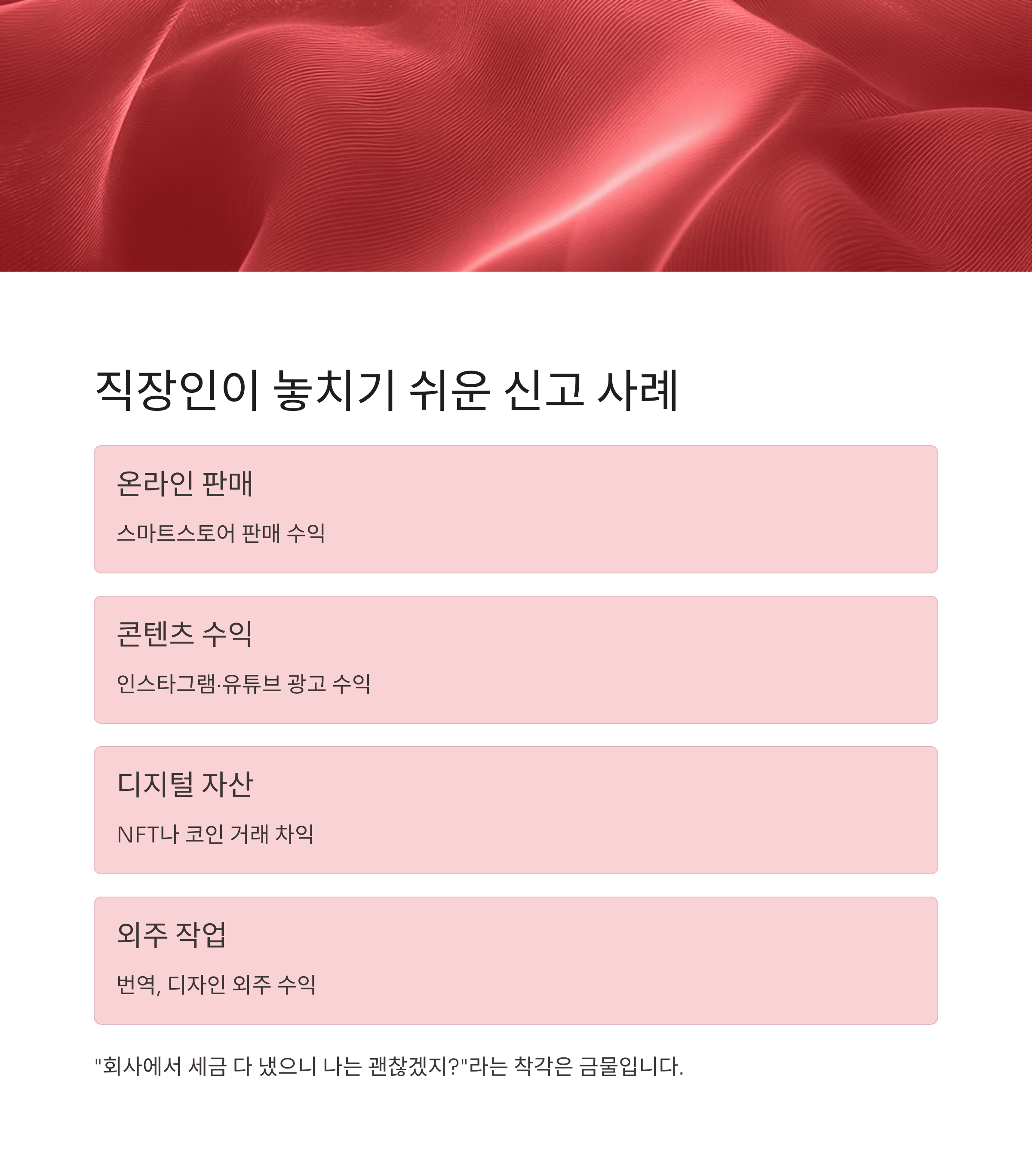 "회사에서 세금 다 냈으니 나는 괜찮겠지?"라는 착각은 금물입니다.