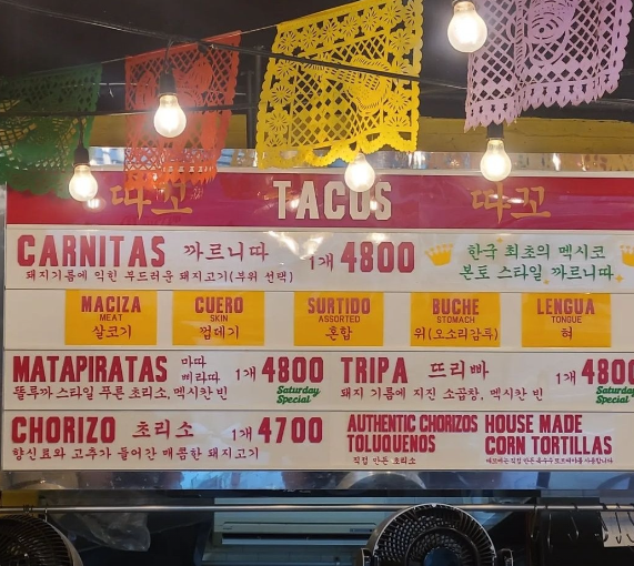 브레이크 타임 없이 운영되어 언제든 방문할 수 있는 것도 큰 장점이죠. 영업시가은 월요일 ~ 일요일까지 오전 11시 30분에 오픈하여 밤 10시에 문을 닫습니다. 마지막 주문은 밤 9시 50분입니다. 정통 멕시칸 타코의 맛을 경험할 수 있으며, 신선한 재료를 사용한 정통 타코의 맛을 제공하는 것이 큰 매력입니다.