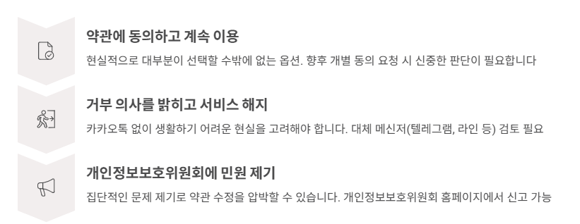 카카오의 이번 약관 개정은 단순히 한 기업의 정책 변경을 넘어, 플랫폼 기업의 시장 지배력과 개인정보 보호 사이의 균형이라는 더 큰 문제를 던져줍니다.