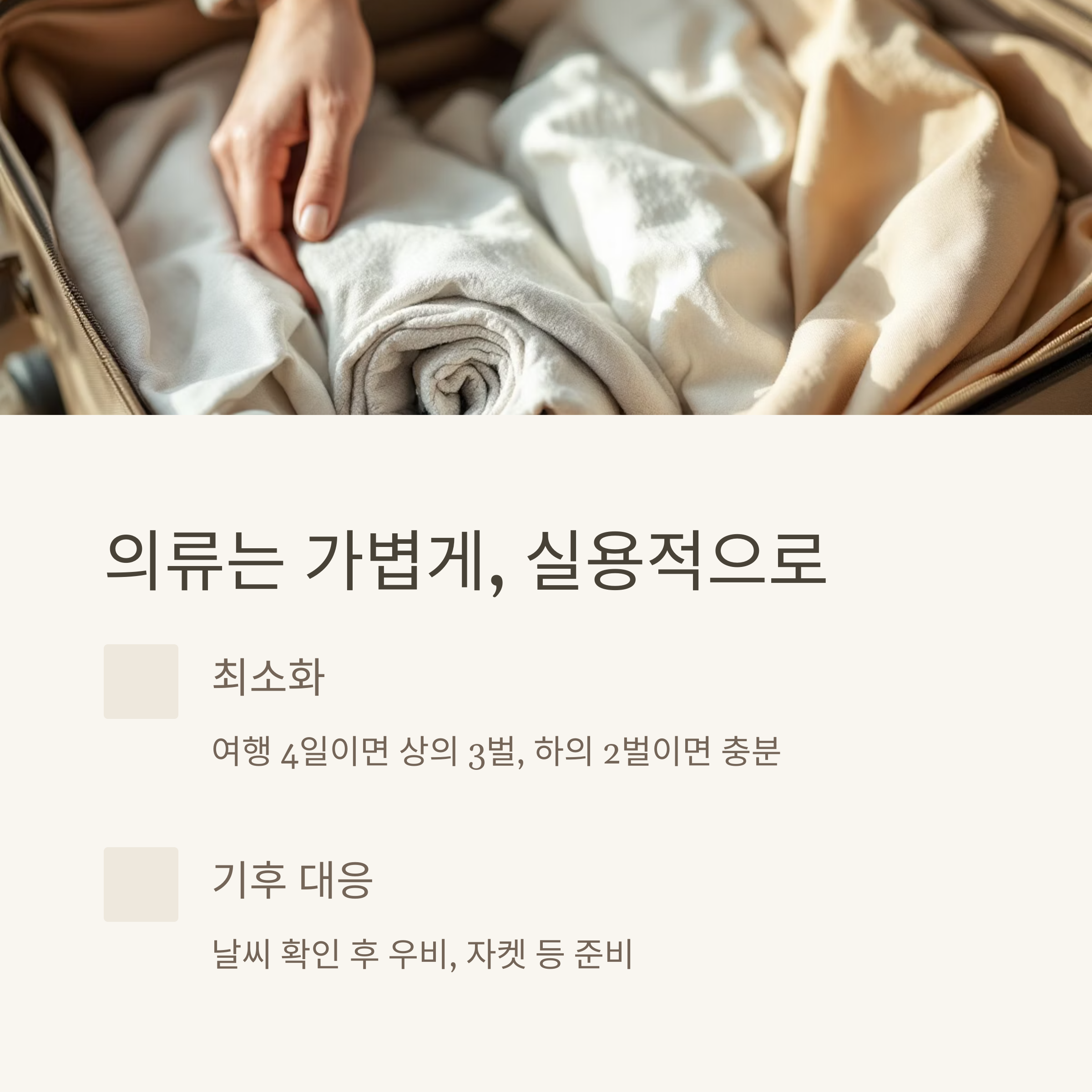 👚 3. 의류는 가볍게, 실용적으로