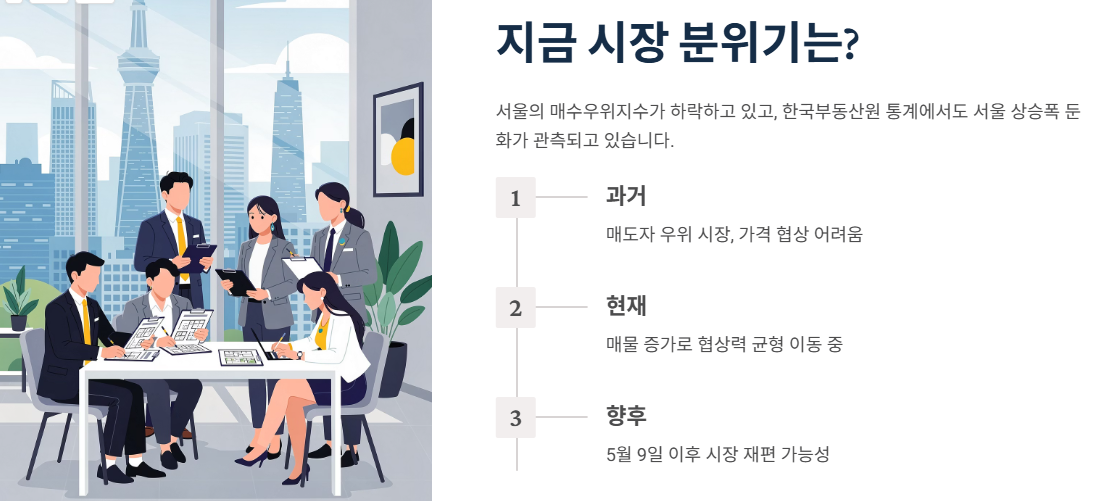 - 5월 9일 전에 “계약을 끝내야 하는 매도자”가 늘면 협상이 쉬워질 수 있고,