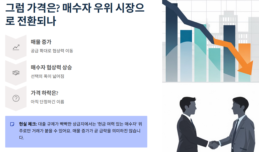 그래서 **“매물 증가 = 무조건 가격 급락”**으로 단정하긴 이릅니다.